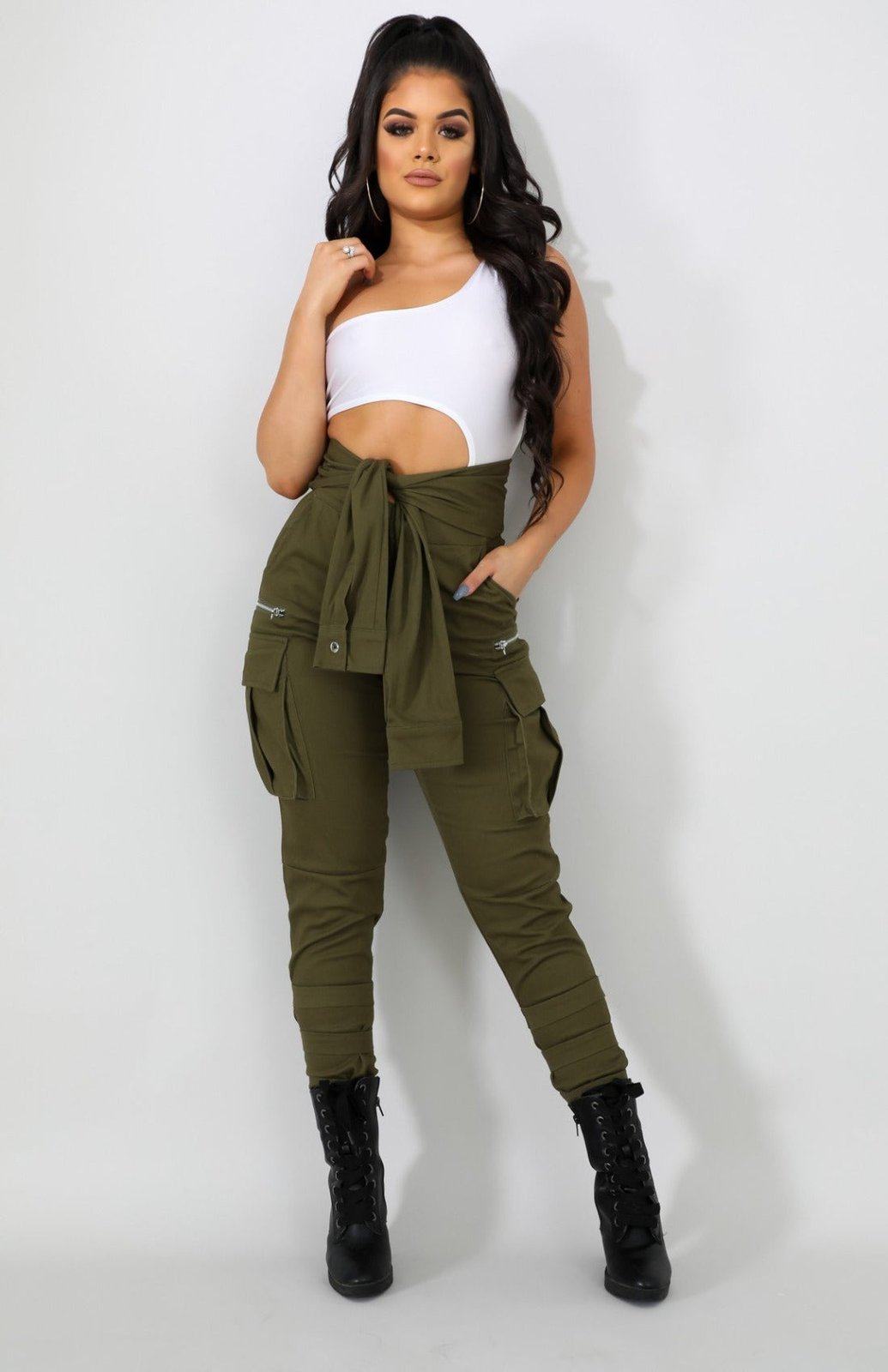 These huggin bomber jeans features, a stretchy fabric, high waist, side pockets, self tie waist straps, finished with a front button and zipper closure.